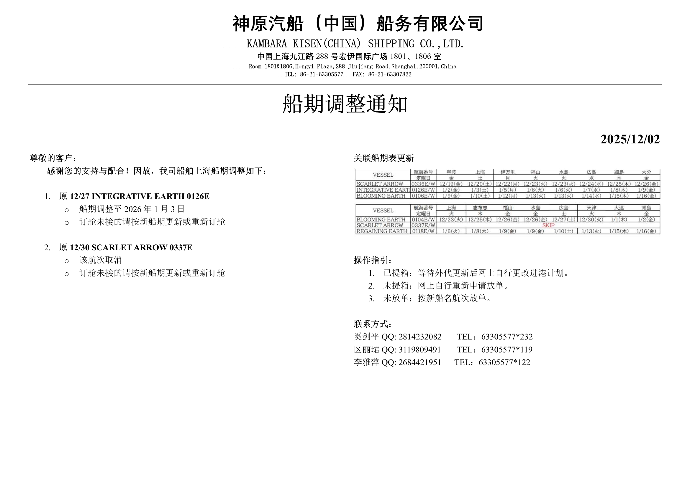 20251202濑户内海航线船期调整通知
