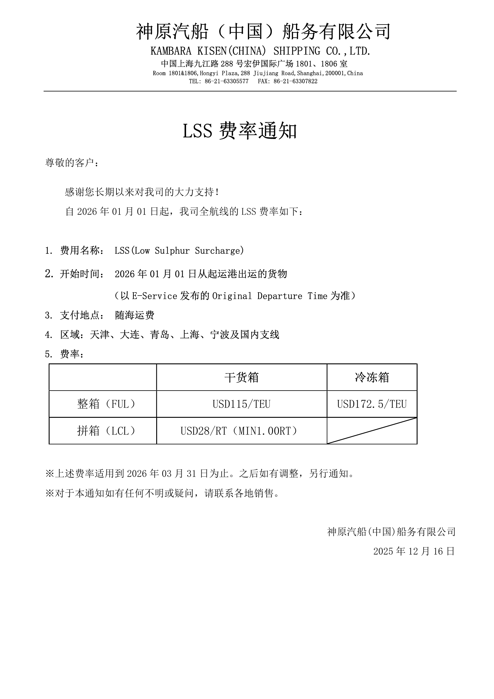 20260101-20260331神原汽船LSS费率通知